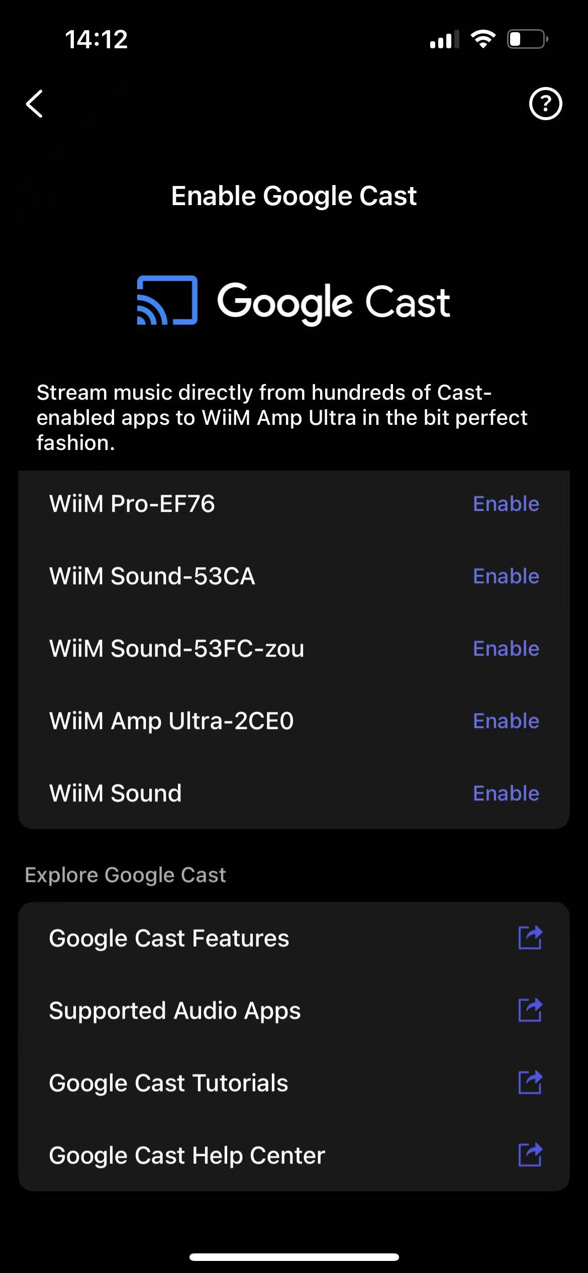 - Tap Enable to turn on Google Cast audio on your WiiM device.