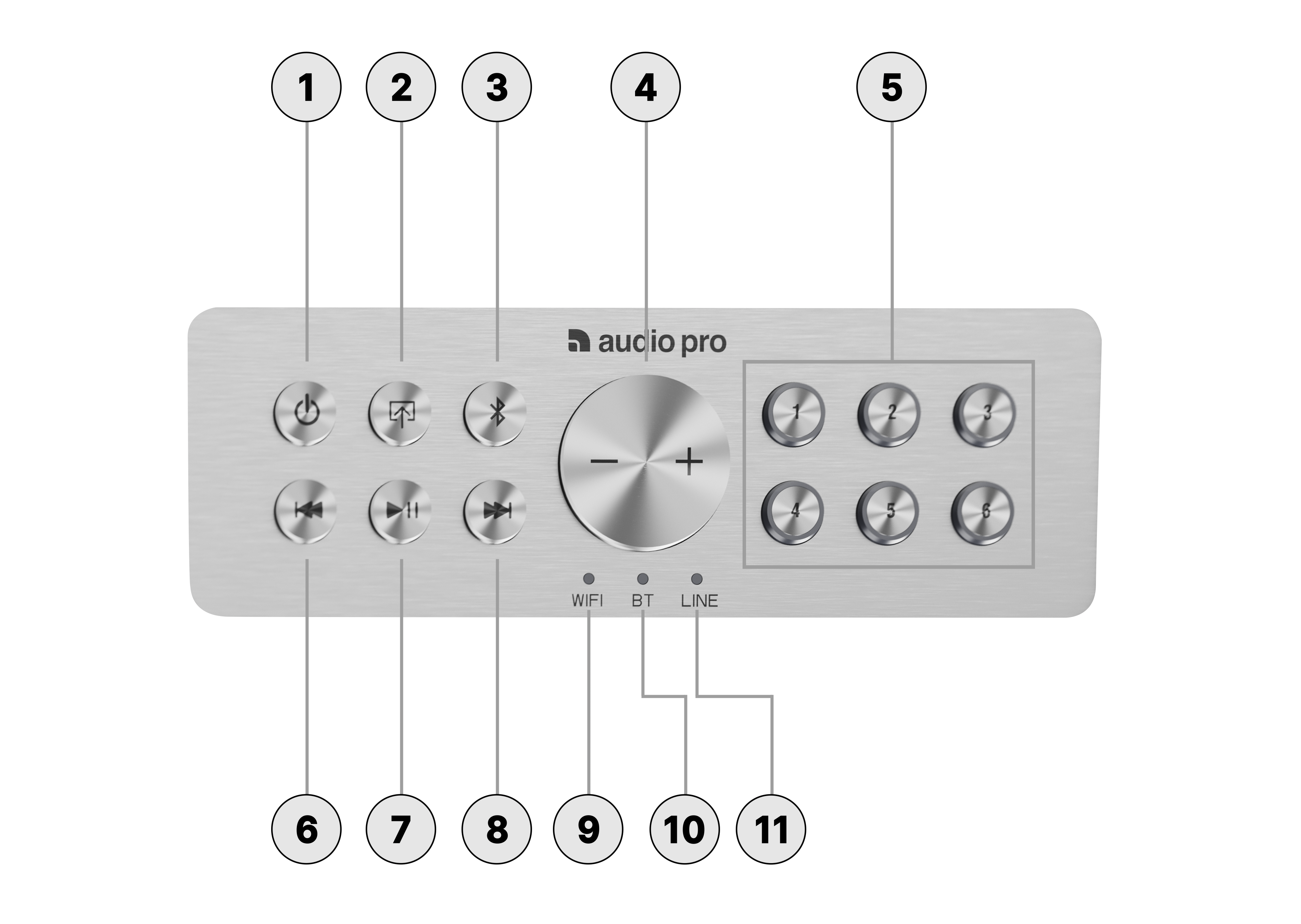 ![]() | Power/Standby | Press to put the AudioPro C10 MKII WiiM Edition into standby mode or wake it. |